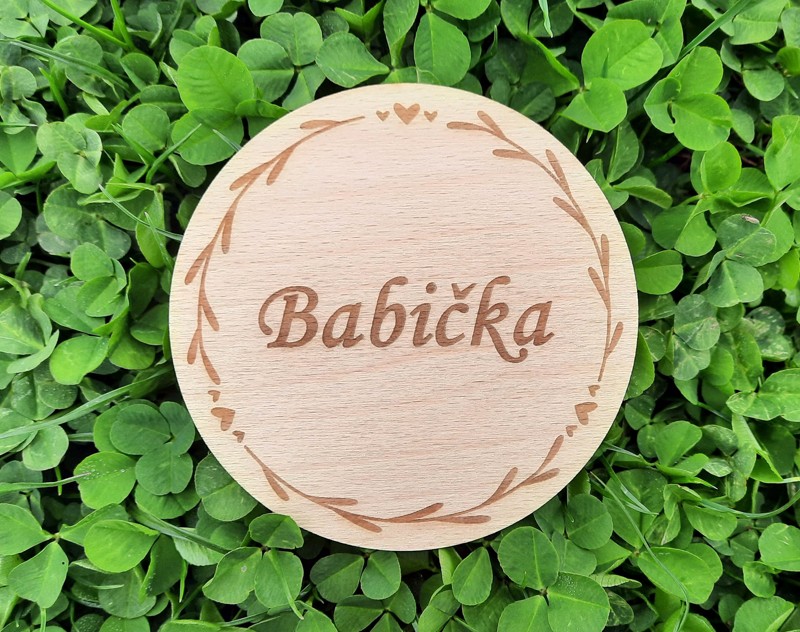Bukový podtácek s nápisem na přání. Krásny dárek pro maminku, babičku nebo kamarádku.