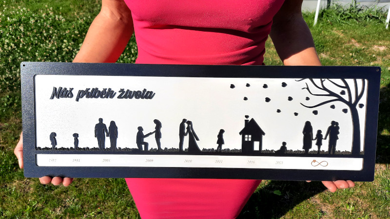 Možnost přidat jakékoliv Vaše důležité momenty jako třeba zásnuby a podobně. Do komentáře k objednávce nejdřív uveďte nápis, může to být příjmení, iniciály a podobně a pak požadované události - data narození, pohlaví dětí a pod. Připravený návrh posíláme před výrobou emailem ke schválení.