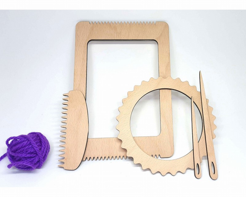 Sada tkacích rámečků. Posiluje trpělivost, rozvíjí kreativitu. Balené v papírové krabičce, vhodné jako dárek. Děti si můžou vyrobit koberečky pro panenky, přikrývky nebo podtácky. Sada obsahuje 1 obdélnikový rámeček rozměr 20x14cm, 1 kruhový rámeček, který má průměr 14cm, hřebínek a dvě jehly.