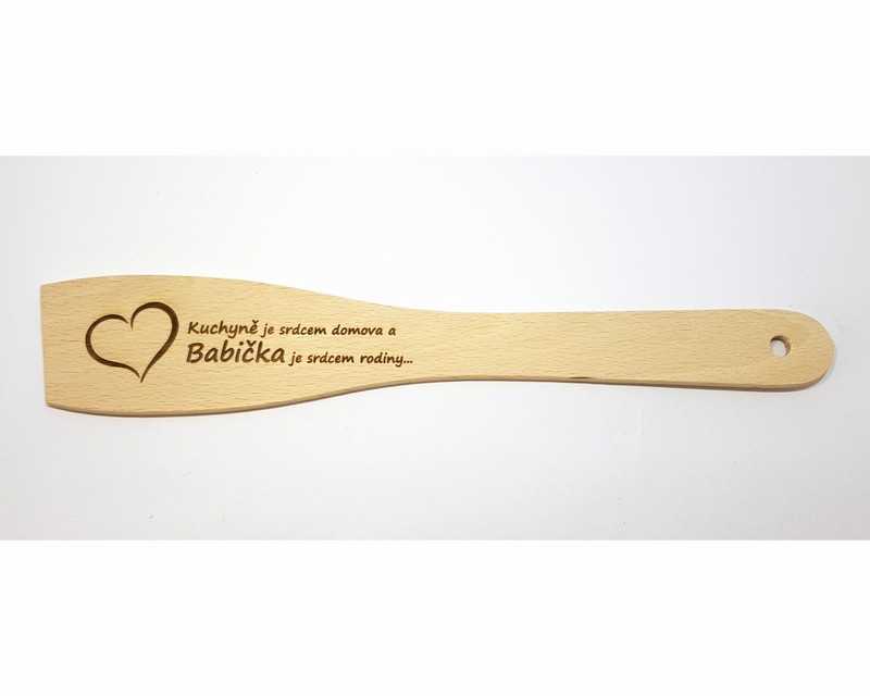 Vařečka z masivního dřeva s precizním opracováním s motivem co udělá radost každé babičce.