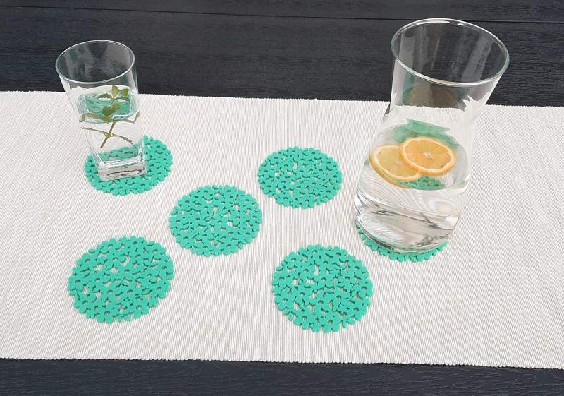 Krásná barevná sada 6 kusů podtácku. Jemný vzor kytiček. Podtácky jsou vyrobené z filcu.  Na výběr 7 barev.  Průměr podtácku je 95 mm. V sadě je 6 kusů.    celý popis