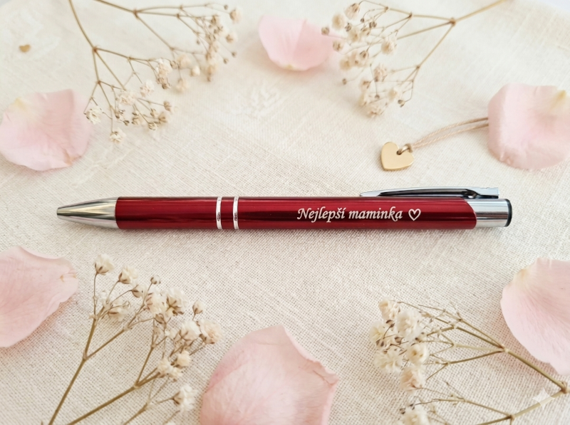 Díky preciznímu laserovému gravírování nápisu „Nejlepší maminka ♡“ se z obyčejné propisky stává osobní talisman, který se skvěle drží a ještě lépe vypadá.