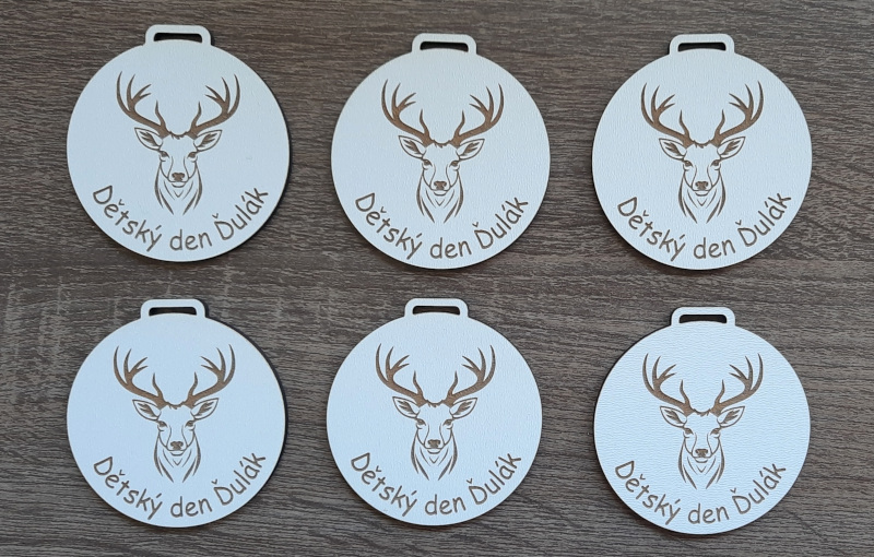 Přední strana je bílá, zadní hnědá. Možnost vygravírovat vlastní motiv, text, logo.