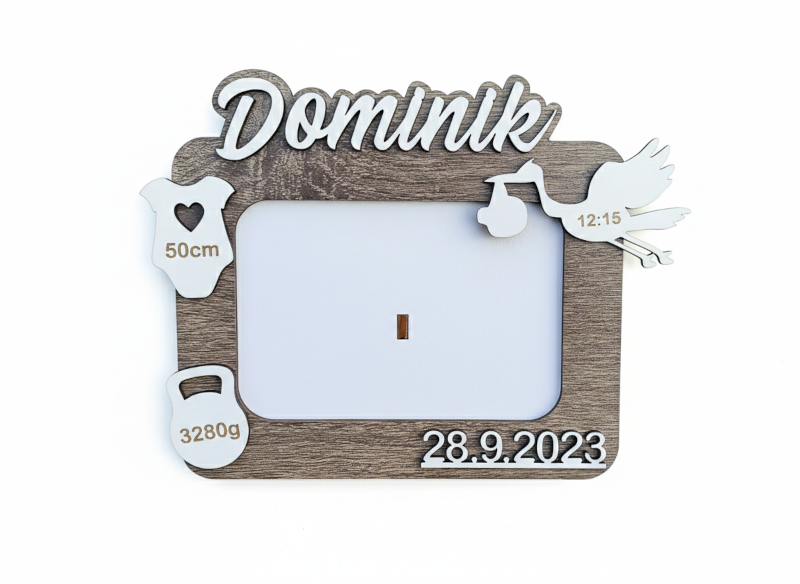 • Všechny údaje na míru: Na rámeček vygravírujeme jméno miminka a kompletní porodní údaje (datum, čas, váhu a délku) přesně podle vašeho zadání. Bude to 100% originál!