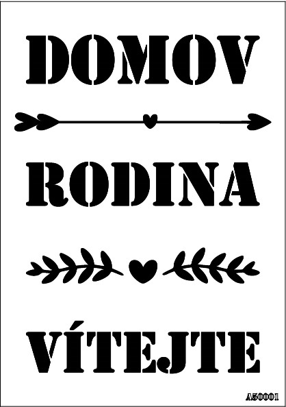 Plastová šablona pro nanášení vzoru na textil, dřevo, papír atd. Vyrobena je z průhledné, ohebné a přitom pevné fólie.