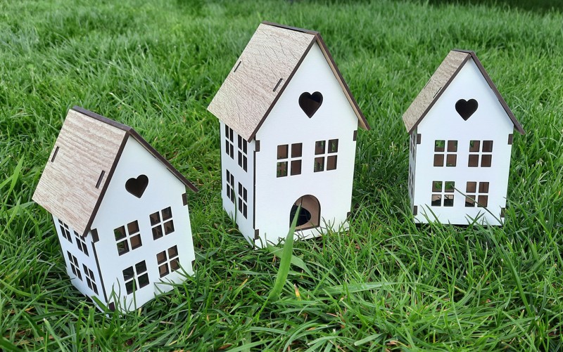 Jedna sada domečků obsahuje 3 domečky vysoké 15, 13 a 11 cm. Výška kostelíku 15 cm, věž 19,5 cm. Domečky posíláme rozložené, jednotlivé díly se jednoduše složí a slepí pomocí lepidla typu Herkules.