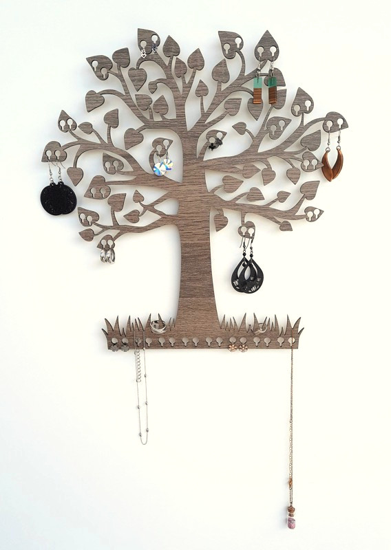 S tímto úžasným věšákem na šperky máte nejenom praktickou pomůcku ale i krásou dekoraci. Strom je vyrobený z dřevovláknité desky, zadní strana je připravena pro pověšení na šroubky, hřebíčky, nebo přilepení na zeď lepidlem typu Mamut. Strom je od zdi odsazený pomocí držáku, proto se šperky jednoduše pověsí.