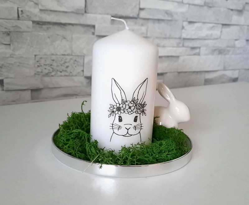 Parafínová svíčka s motivem. Výška svíčky je 11 cm.