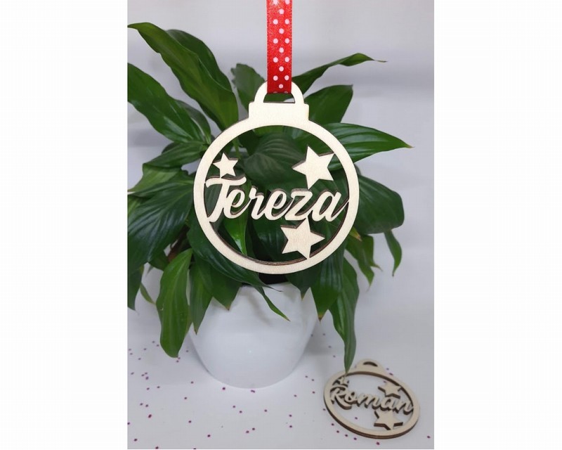 Dřevěná ozdoba se jménem. Krásná osobní dekorace na stromeček, vhodná také jako dárek.