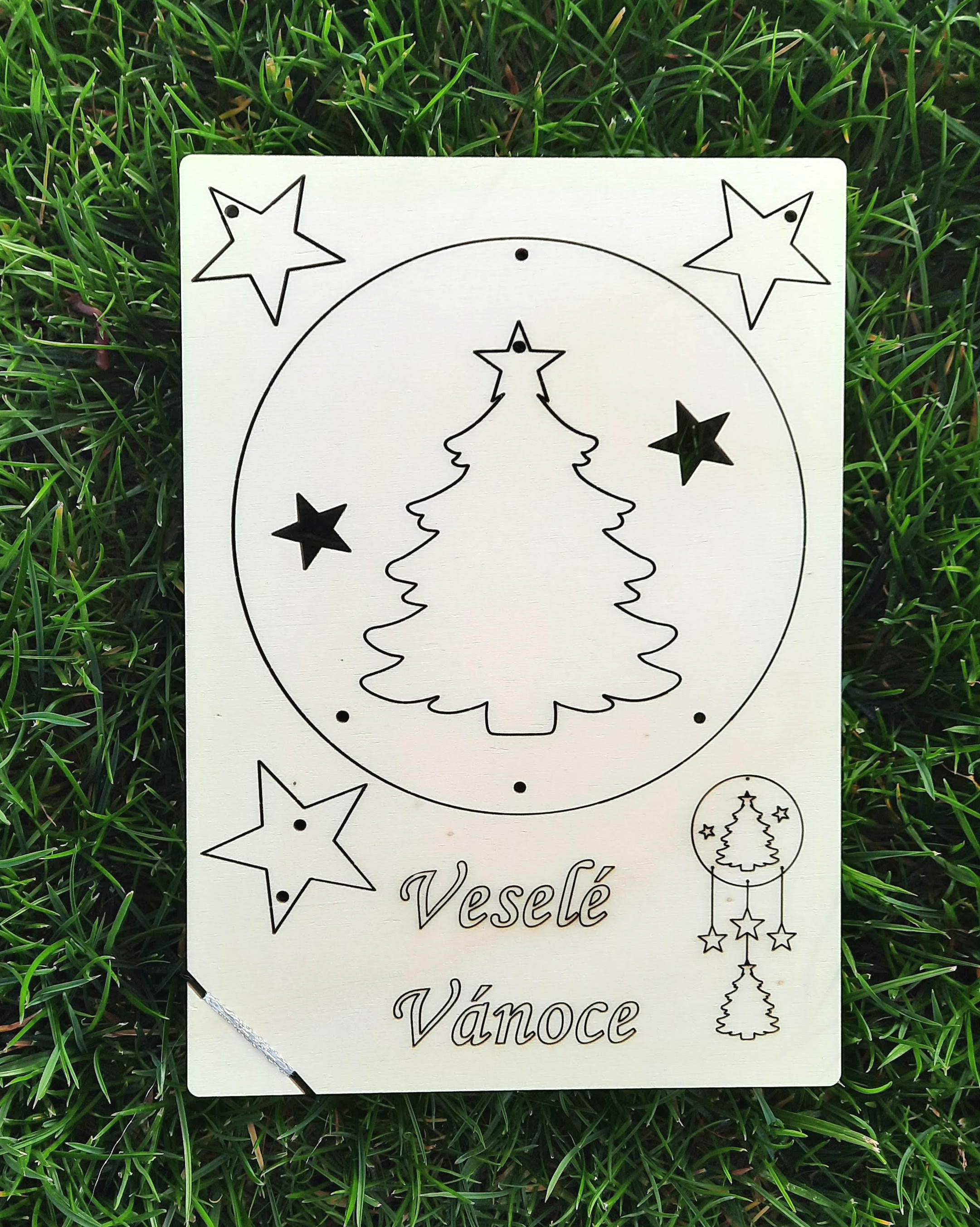 Krásný vánoční dárek. Dřevěná vylamovací vánoční ozdoba k sestavení. Jednotlivé díly si jednoduše vylomíte a sestavíte pomocí přiložené nitě podle obrázku na ozdobě.