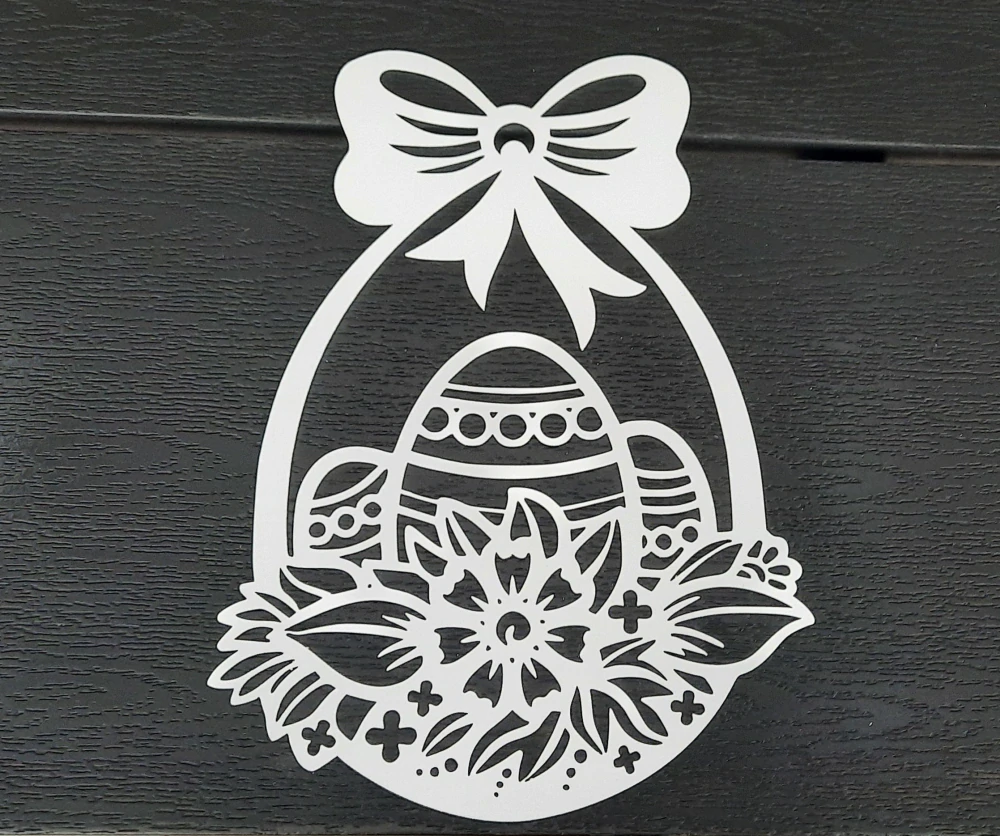 Ozdoba na okno vyobená z odolného bílého plastu. Na sklo se lepí pomocí lepící pásky, nebo samolepící hmoty.