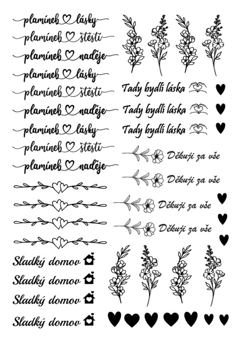 Vodové samolepky k nalepení na svíčku nebo jiný hladký povrch. Velikost A4.