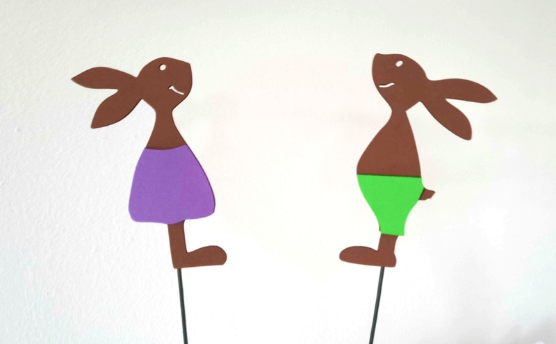 Zápichy z voděodolného materiálu do květináče nebo truhlíku. Motiv má velikost 10 cm.  Protože chceme zabezpečit voděodolnost celého zápichu, místo špejle používáme poplastovaný květinářský drátek v zelené barvě. celý popis